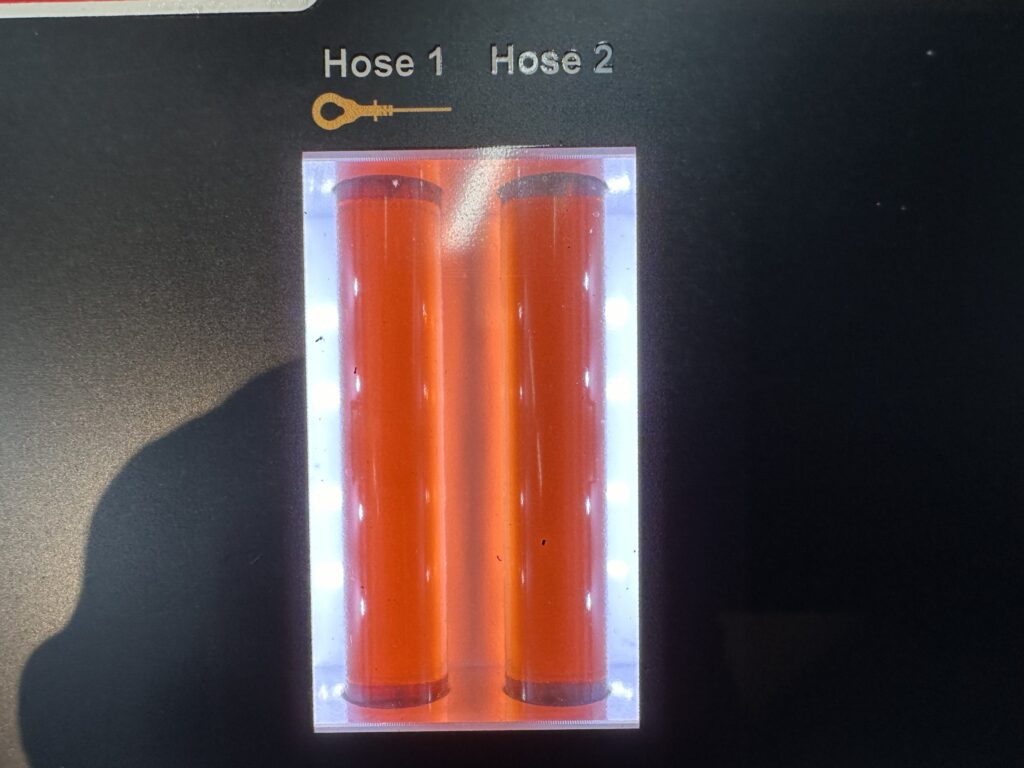 左が新油で右が捨てられていく車両に入っているATFです。