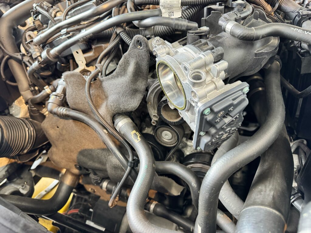 水冷インタークーラーが内蔵されたインテークマニホールドを外して、