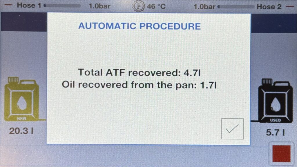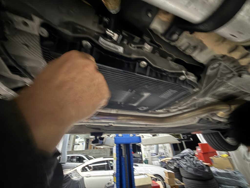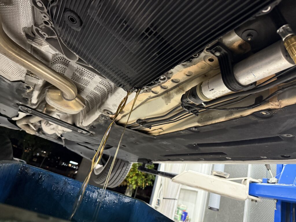 新しいオイルパンを付けて、交換時に吸引と出てきた分をフラッシングする前にGT3が新油を注入します。