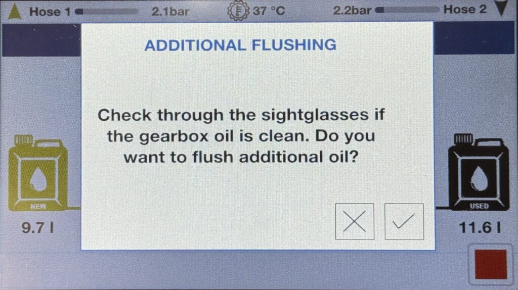 クリーニングが終わればオイルパンの中身分をGT3が吸引、その後エンジンを切ってオイルパンを交換していきます。