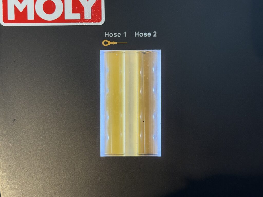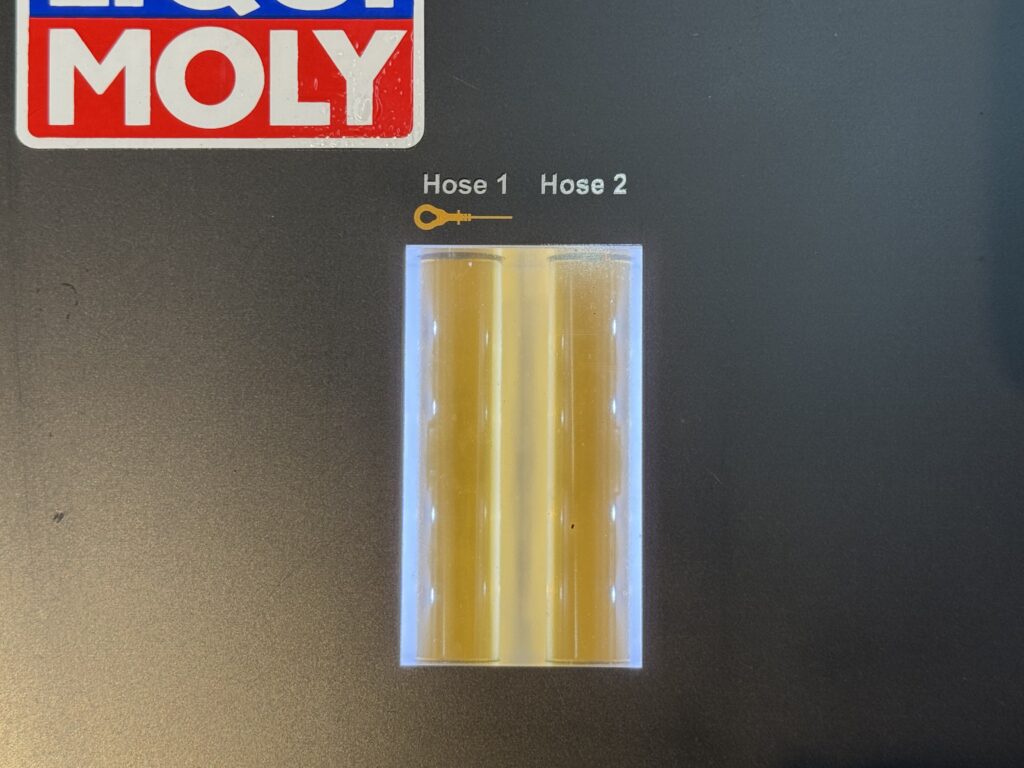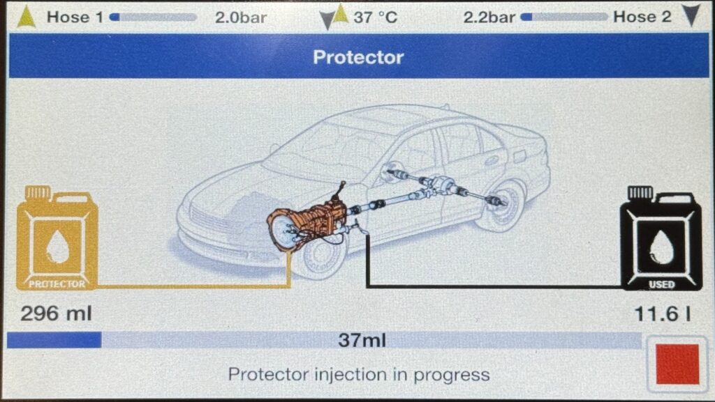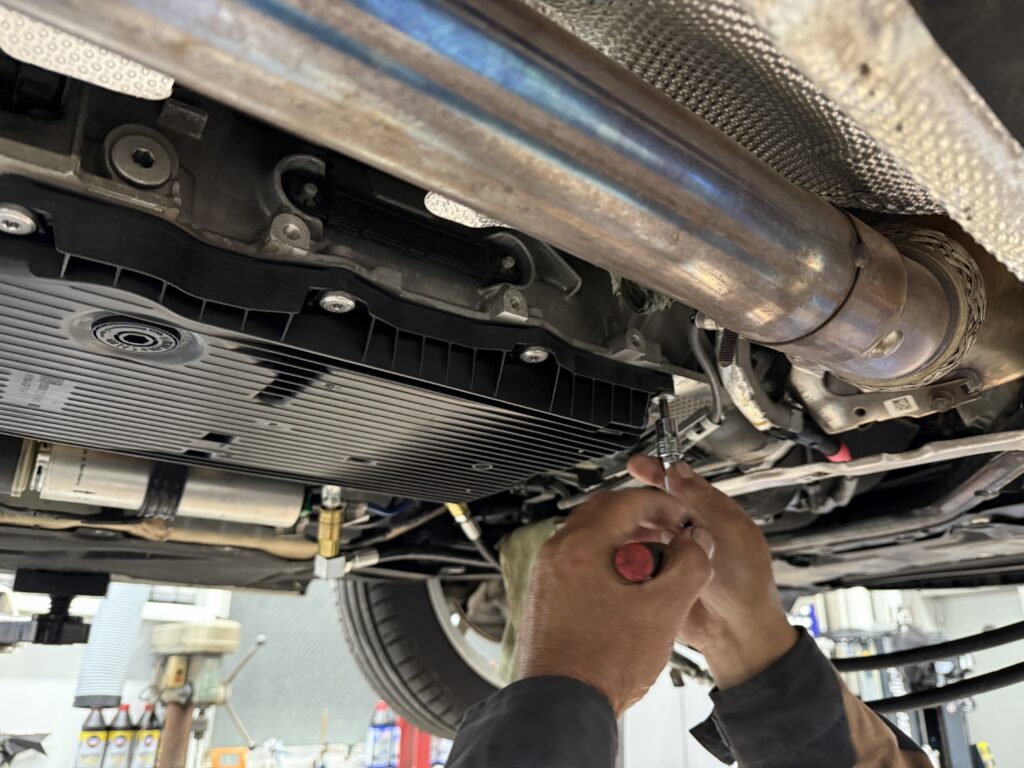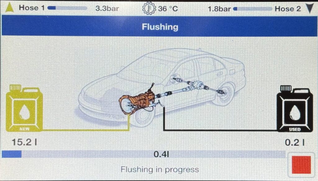 新しいオイルパンを付けて、交換時に吸引と出てきた分をフラッシングする前にGT3が新油を注入します。