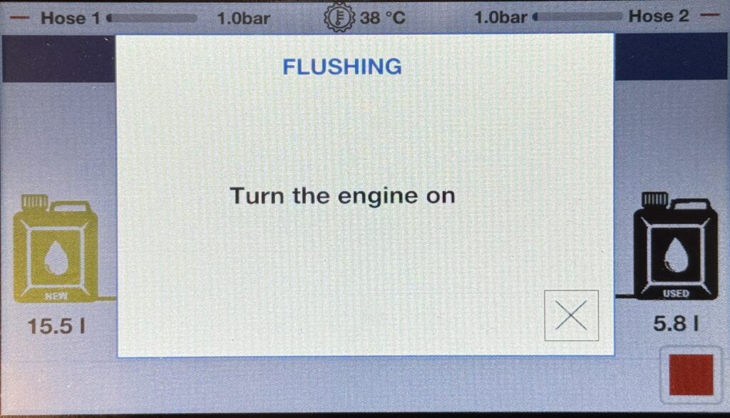 クリーニングが終わればオイルパンの中身分をGT3が吸引、その後エンジンを切ってオイルパンを交換していきます。