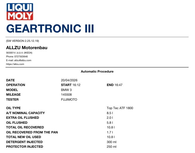 もちろんATF交換はLIQUIMOLY GEARTRONIC3 のフルコースにて!