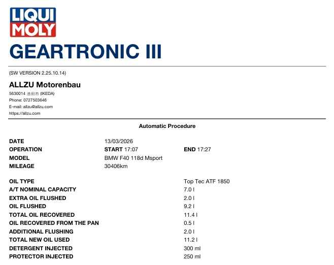 LIQUI MOLY GEARTRONICⅢ ATF全量交換