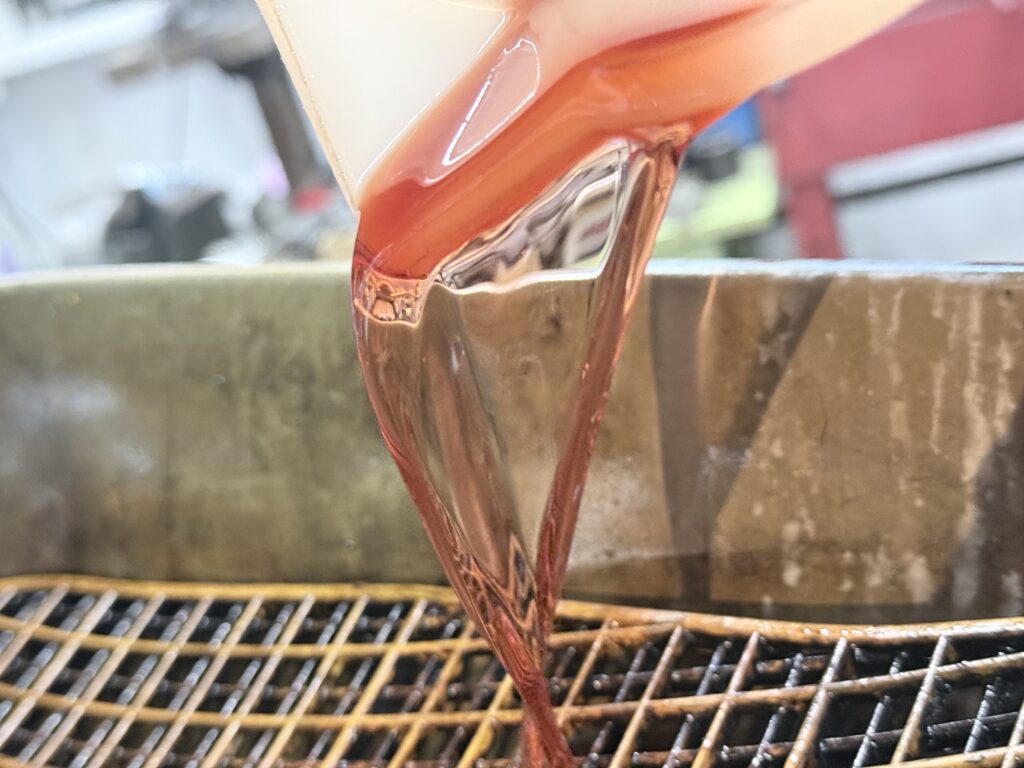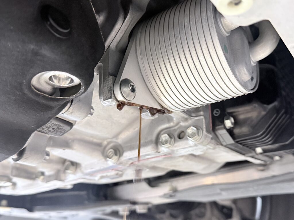 アタッチメントを外す際にこぼれてしまうATFを受けてそれを捨てる時の様子。