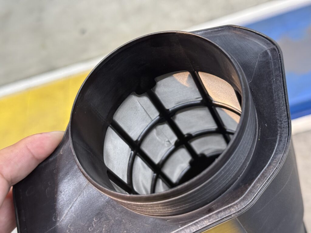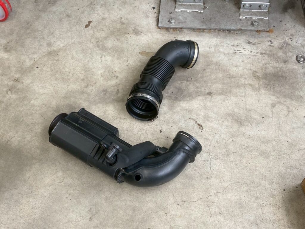 この純正のインテークパイプ、箱状のものがレゾネーター内蔵で吸気音を吸収するとのこと。