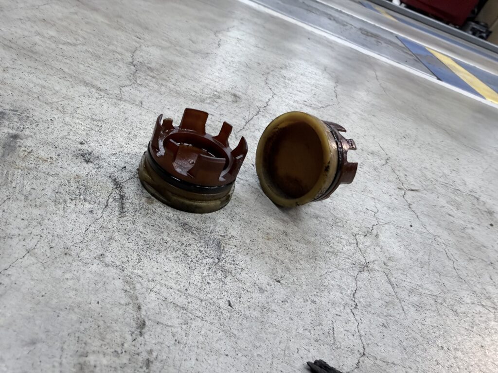 新しい物は赤茶色?みたいな色のOリングに対してもともとは黒色のOリング。