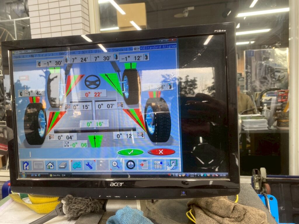 サブフレームを半下ろししてますのでアライメント測定及び調整をして完了です!