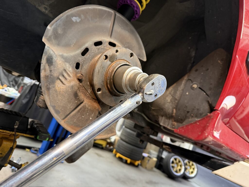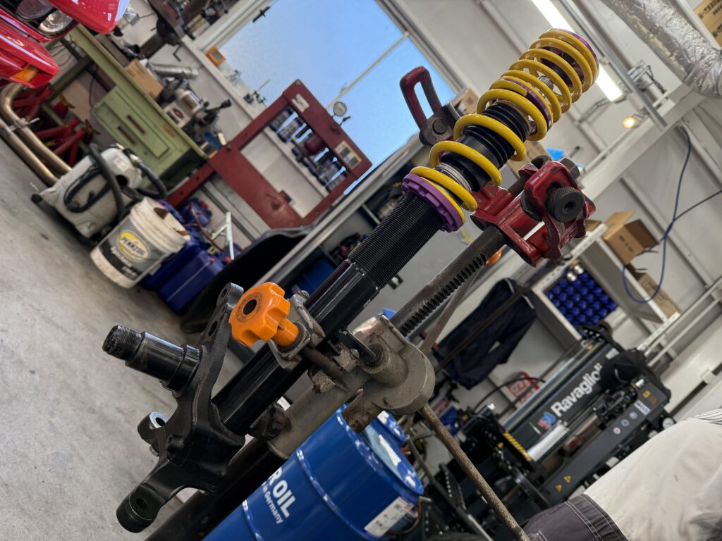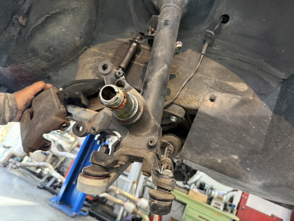 この当時はナックル部分がショックの下に溶接されている構造でして、、、(僕、宮本はこの構造の車を所有したことありません)