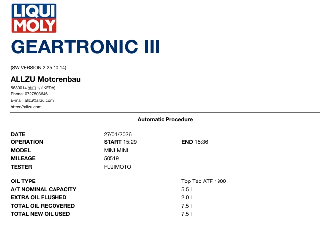 LIQUI MOLY GEARTRONICⅢでATF全量交換をして現在の走行距離が50,000km