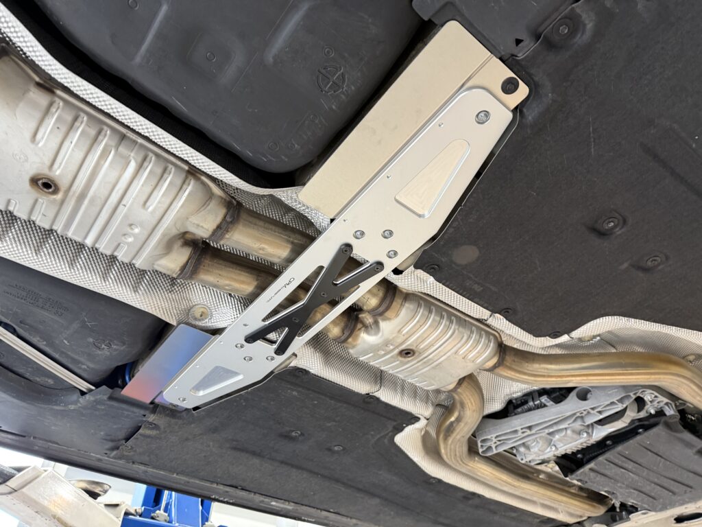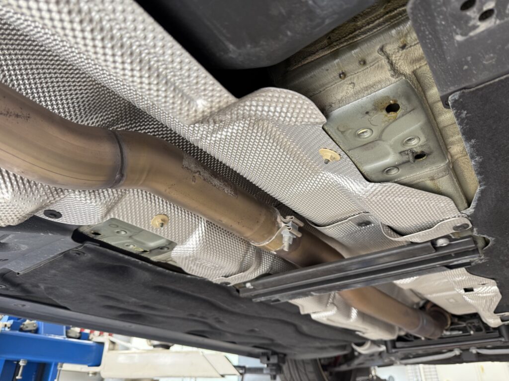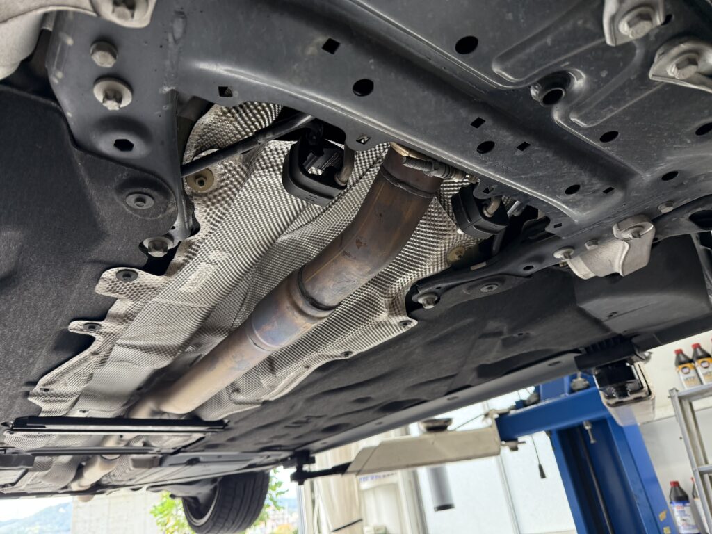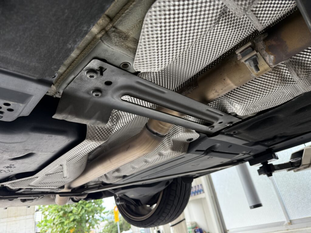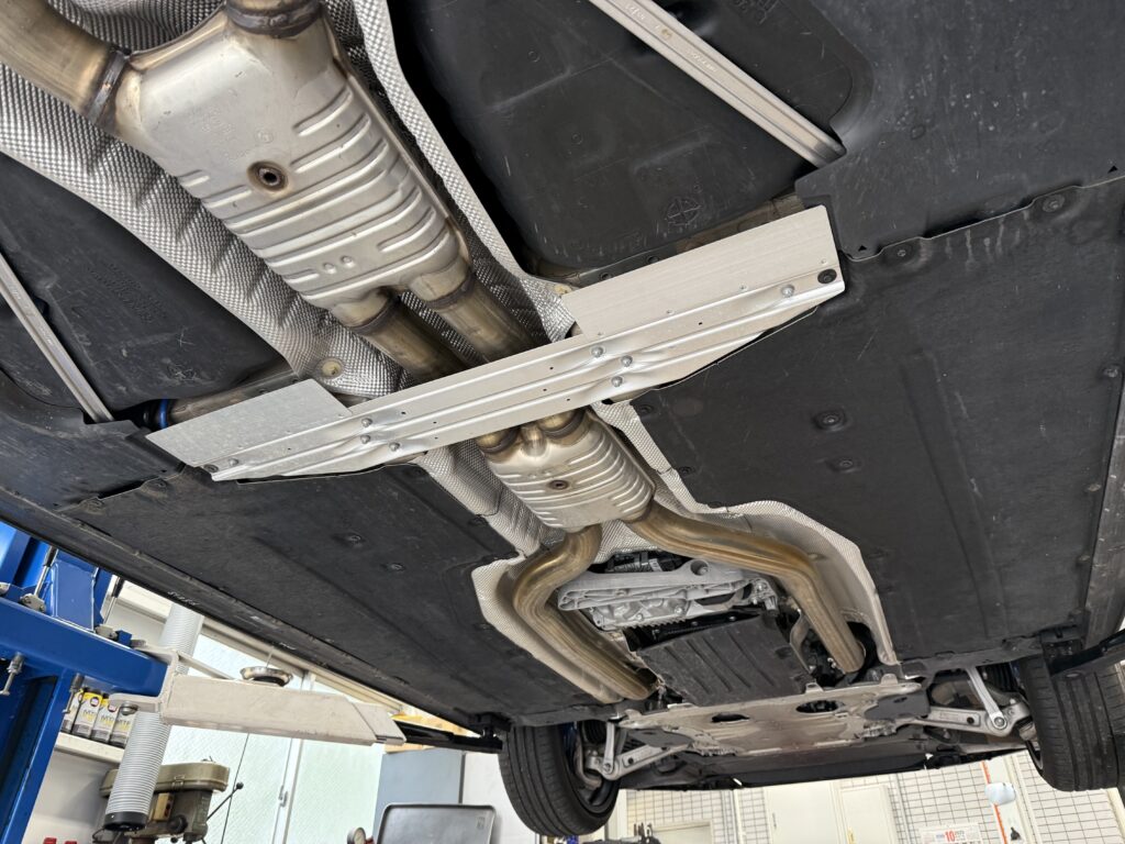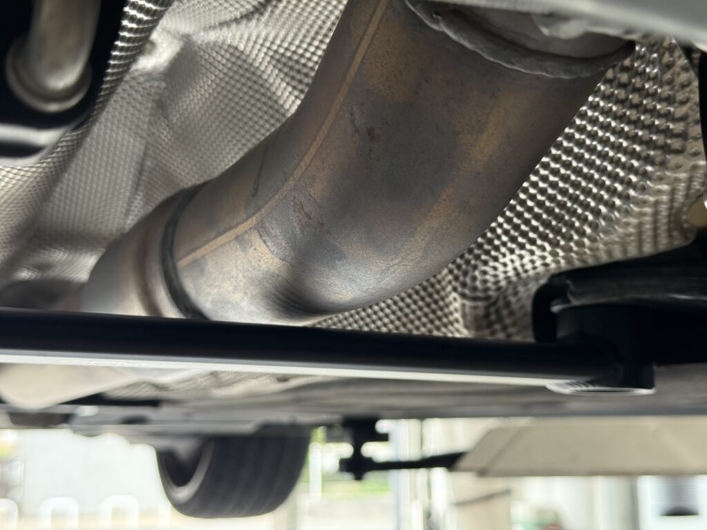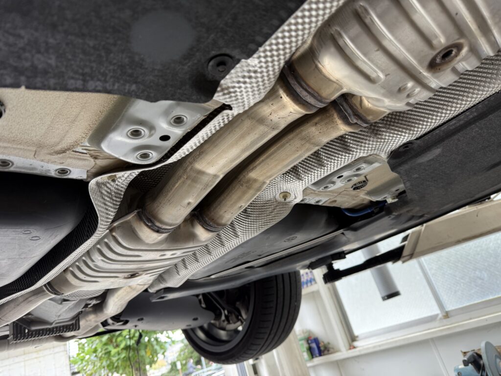 K様はREMUSマフラー+フロントパイプを装着されており、ノーマルでいう大きな二次触媒が無いということもあり