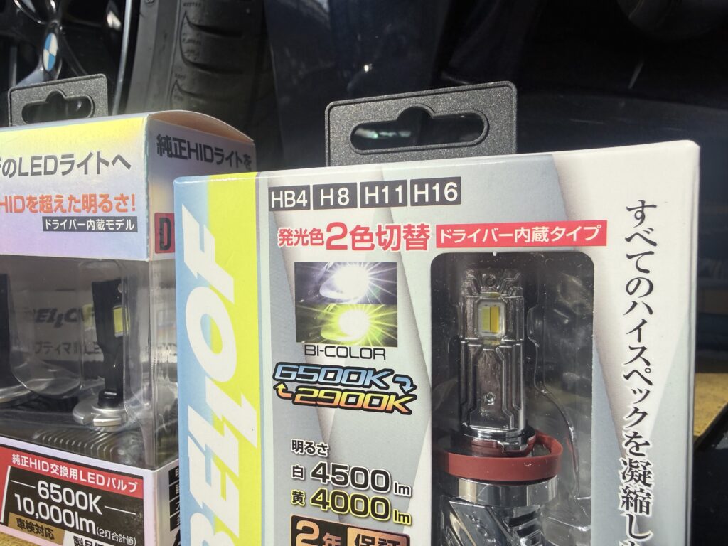 普段は夜間の補助灯のように照らし、霧の時なんかに黄色に切り替えるということも可能です。